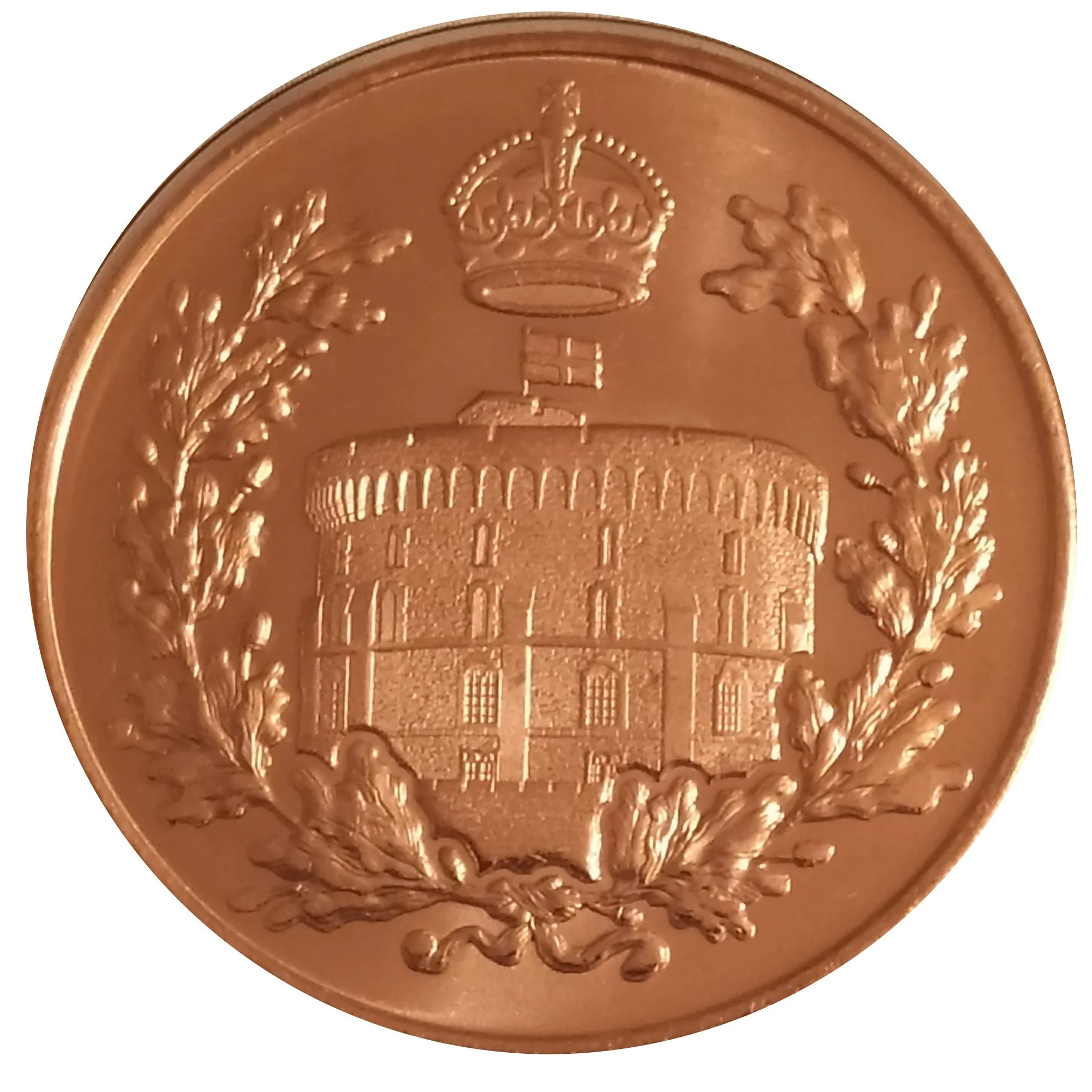 Windsor Castle with crown above and wreath below.