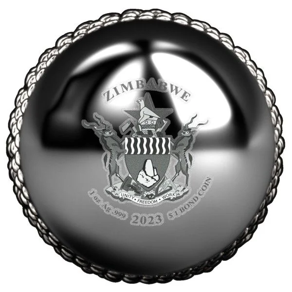Zimbabwe's Coat of Arms above weight, purity, date, and value. Country name above.