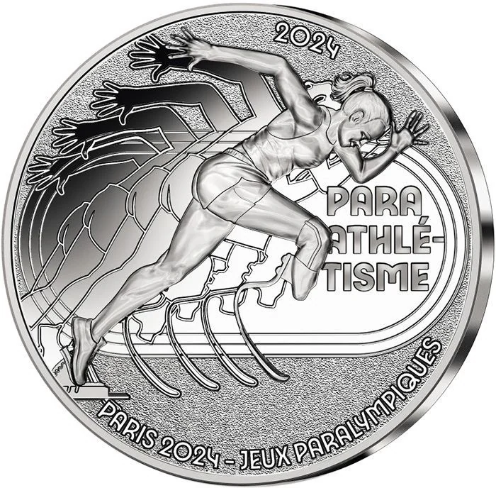 Paris 2024 Paralympic logo over a view of Paris, with the Eiffel Tower before a Seine River stylized as a track.