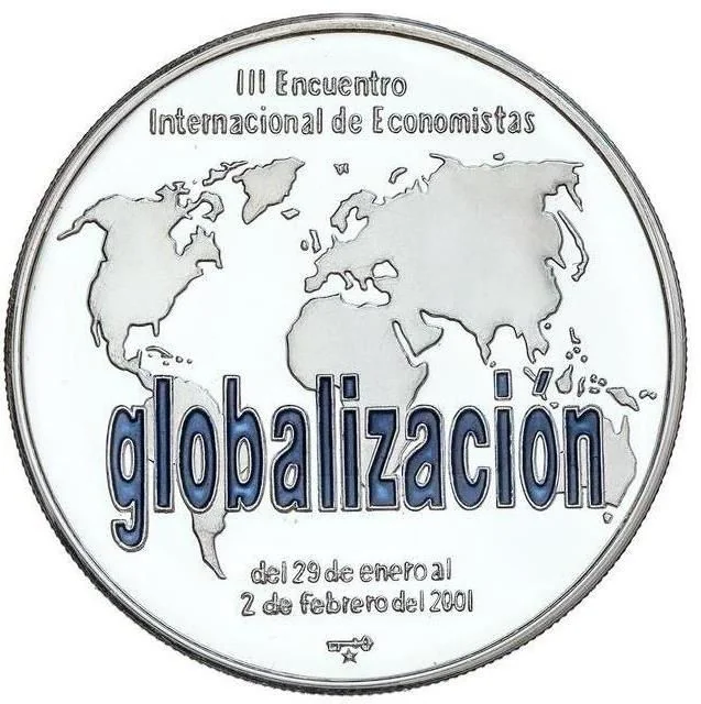 Description: World map. "Globalización" centered, event name and dates above and below. Mintmark at bottom.