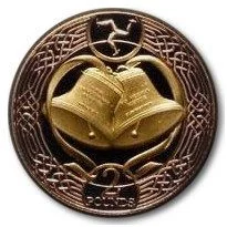 Two bells engraved with the couple's names and the Manx coat of arms.