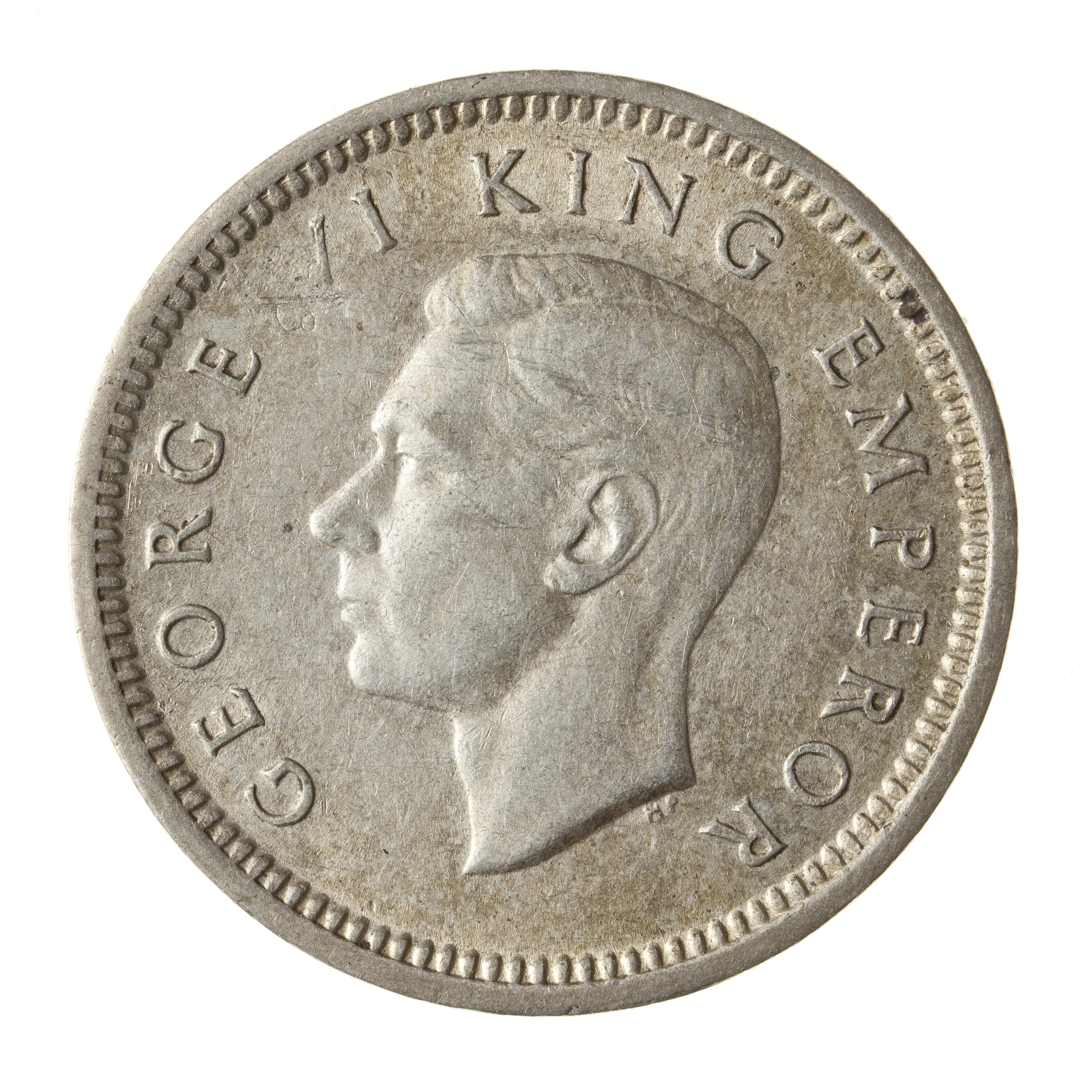 King George VI, uncrowned, left-facing portrait, legend encircling.