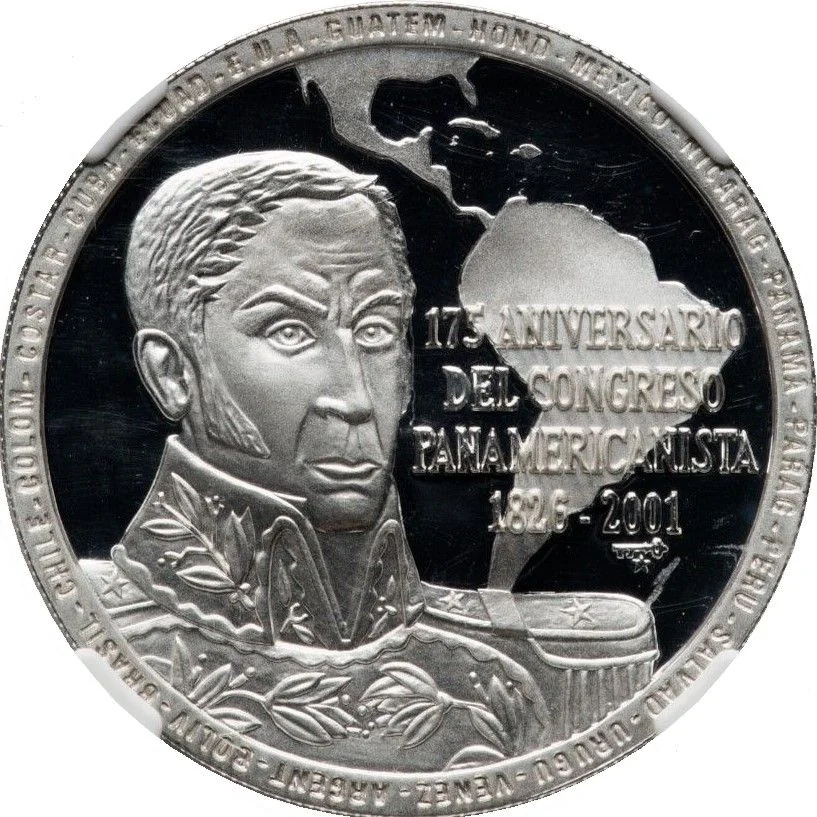 Translation: 175th Anniversary of the Pan-Americanist Congress 1826-2001 Argent - Boliv - Brasil - Chile - Colomb - Costa R - Cuba - Ecuador - U.S.A - Guatemala - Hond - Mexico - Nicaragua - Panama - Paraguay - Peru - El Salvador - Uruguay - Venezuela -