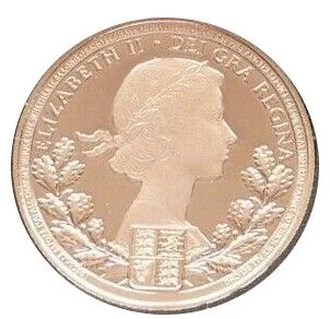 Young Elizabeth II facing right. Oak wreath and crowned shield below.