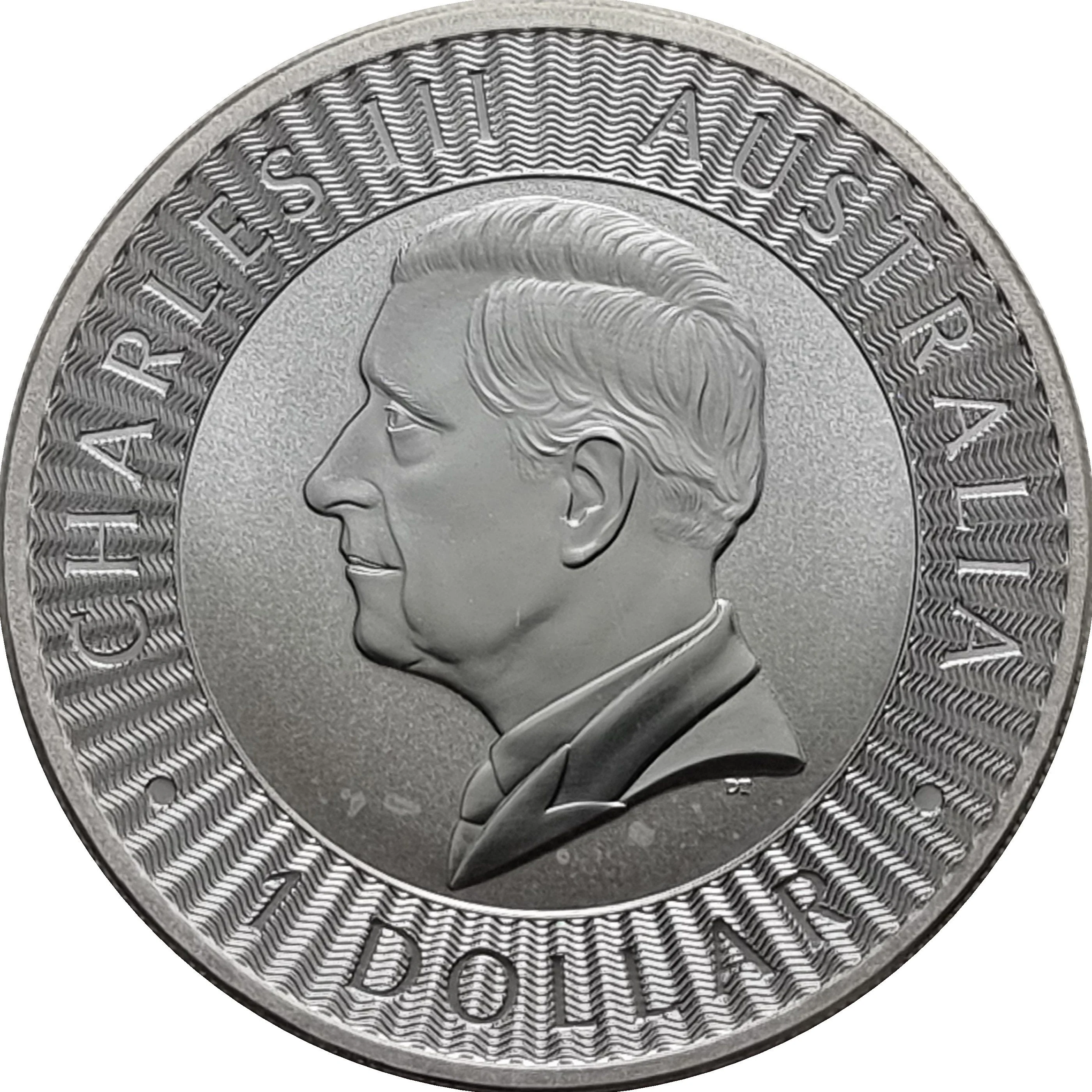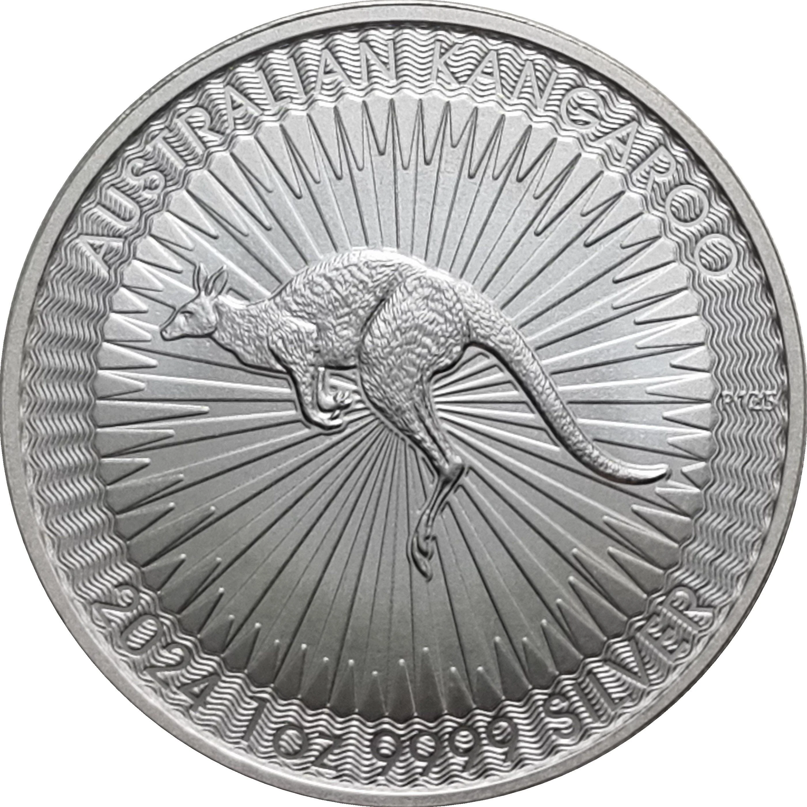 Red Kangaroo facing left, mint mark right. Date, purity, and metal below.