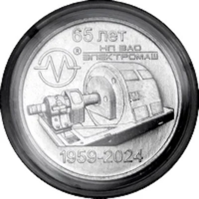 Center: electric motor. Top: inscription. Below: company logo and a two-line inscription separated by a line. Bottom: inscription.