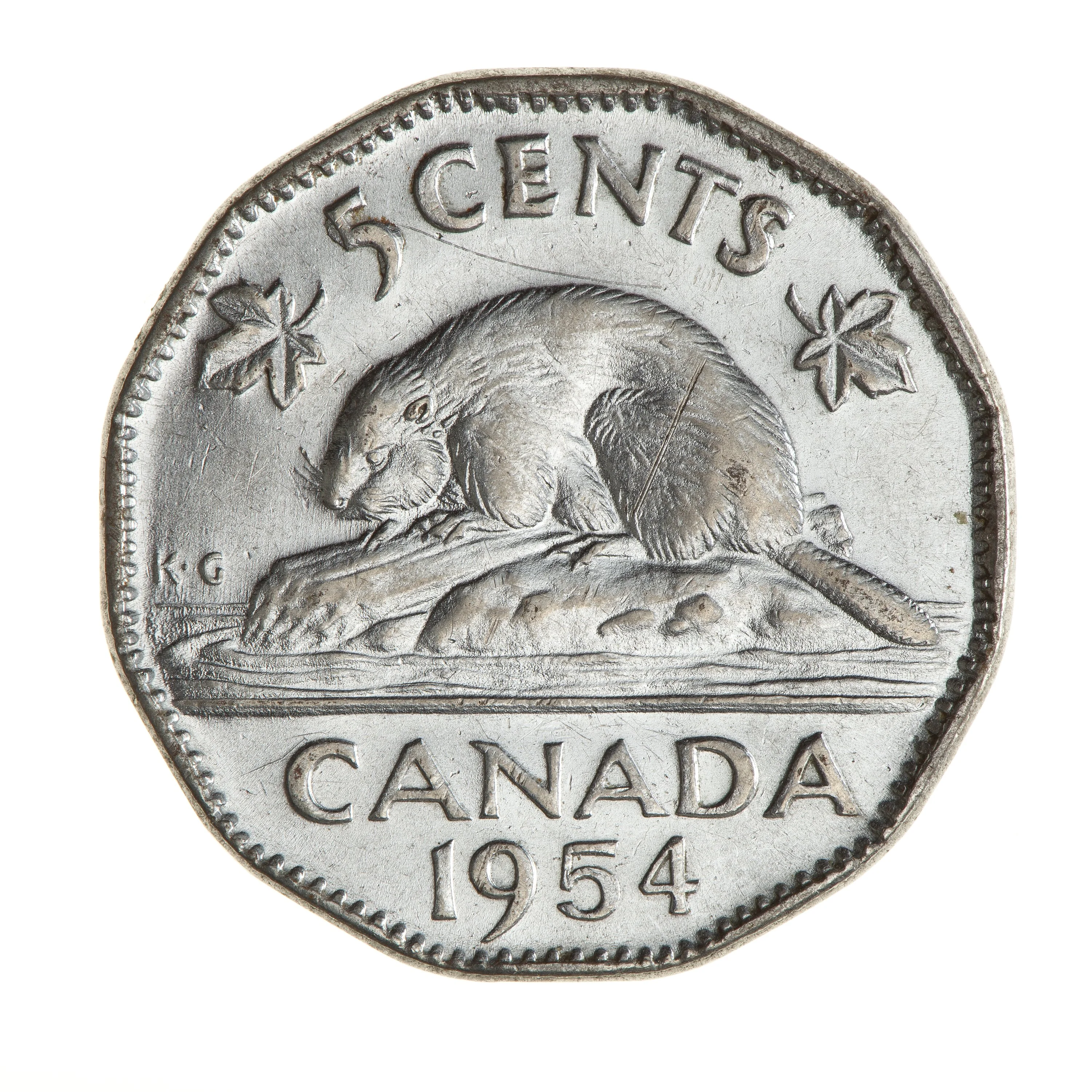 A beaver over "CANADA" is flanked by maple leaves and the face value.