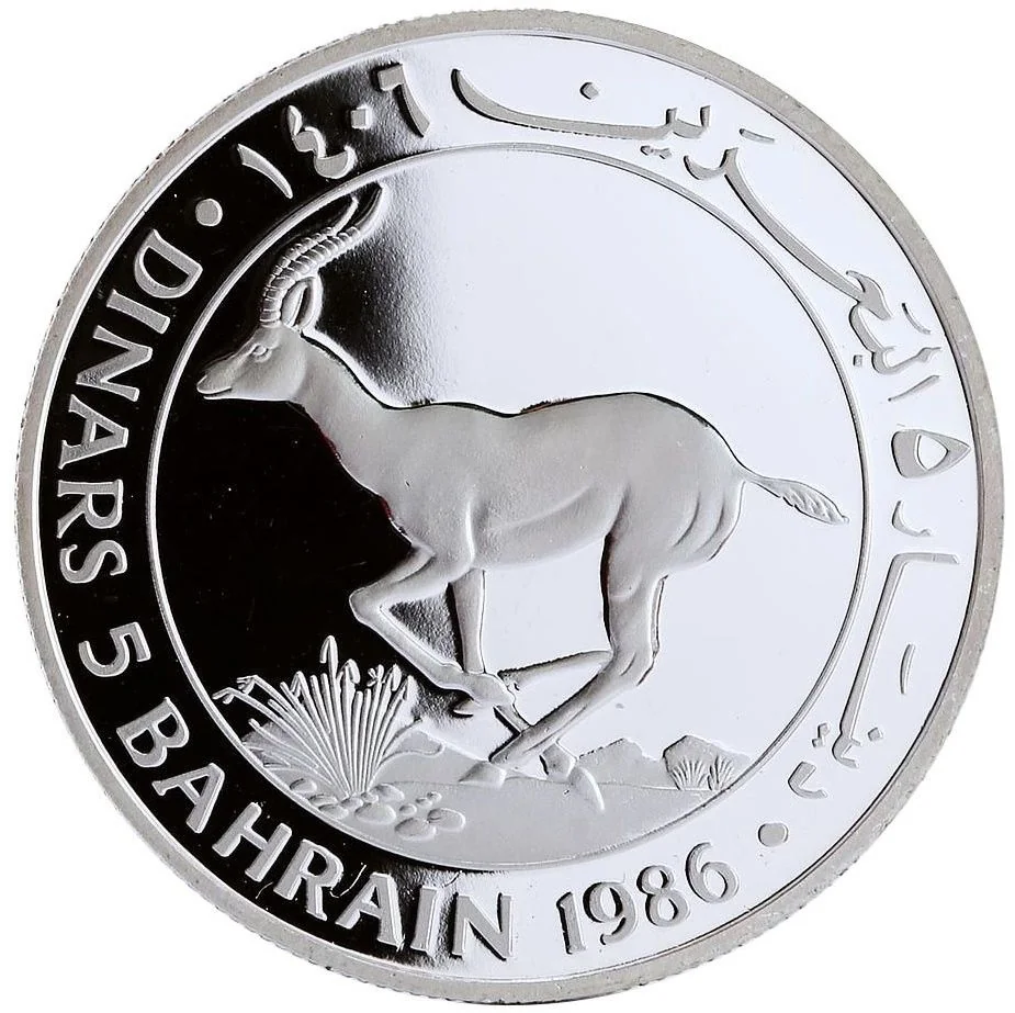Arabian Oryx in circle. State name, dates, and denomination in Arabic and English around.