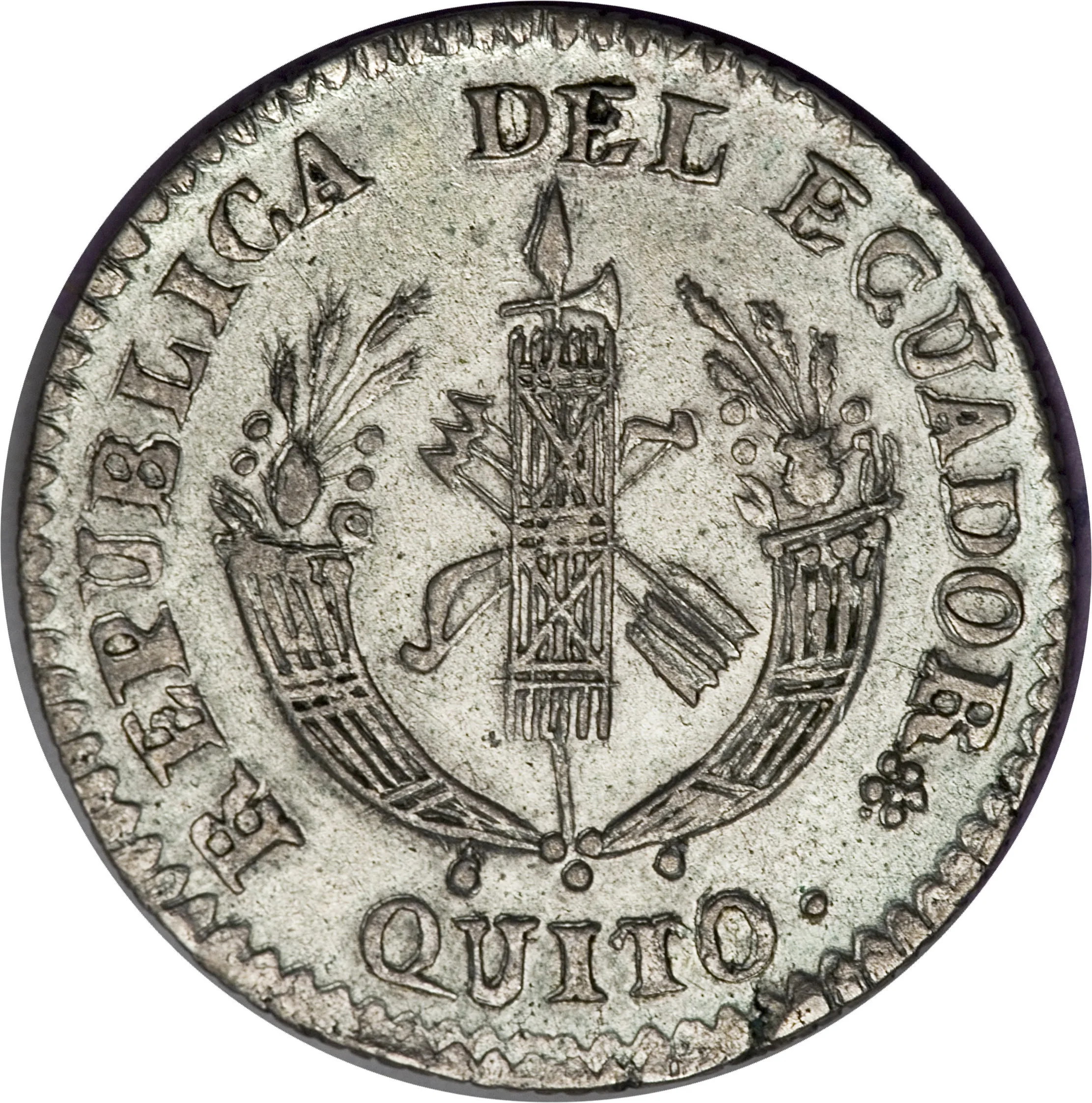 In 1836, Ecuador was a young and financially precarious republic, grappling with the complex monetary legacy of its colonial past and the disruptive forces of its recent independence. The country lacked a unified national currency, leading to a chaotic circulation of a wide variety of coins. The most prevalent were silver coins from neighboring Colombia (the Gran Colombian