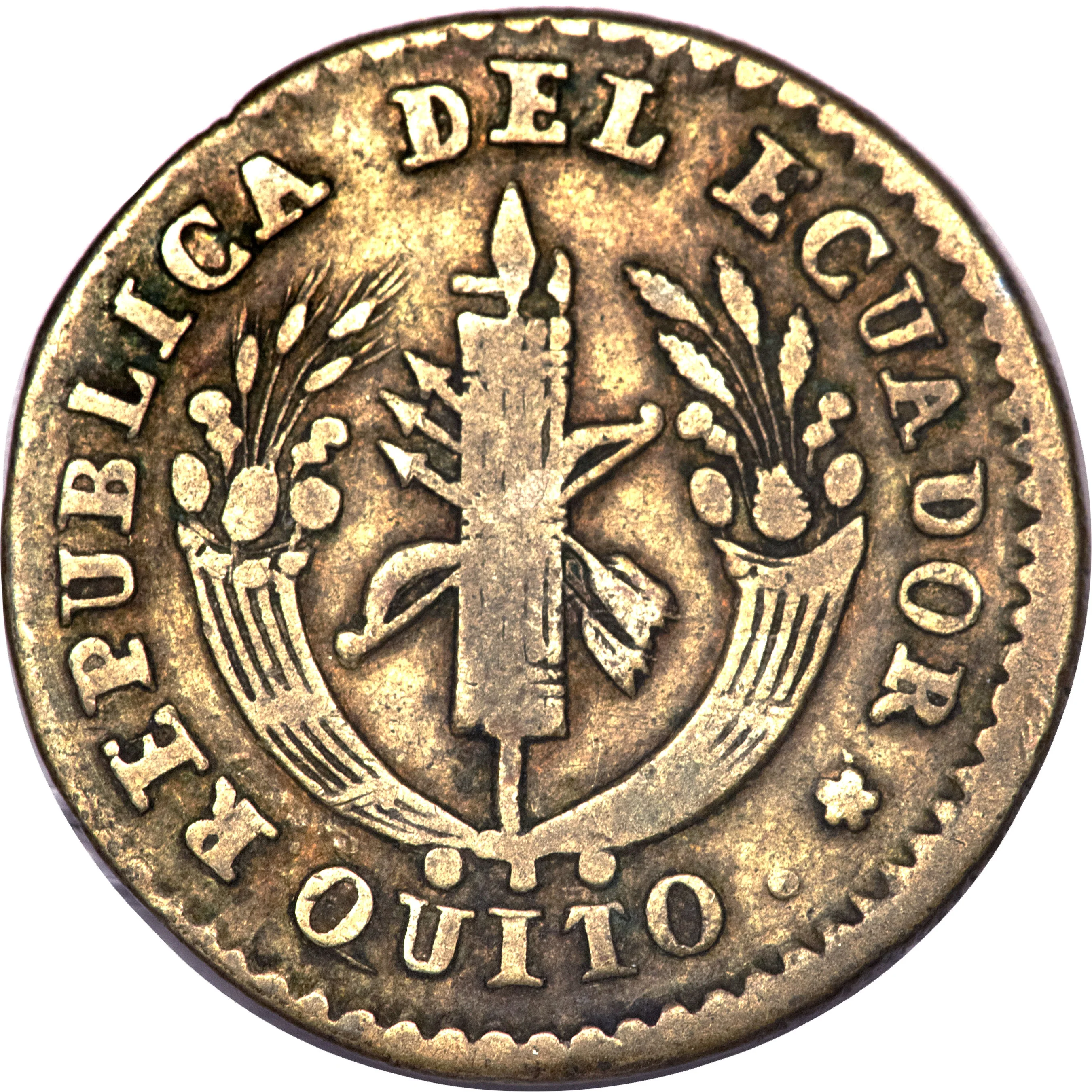 In 1836, Ecuador was a young and financially precarious republic, grappling with the complex monetary legacy of its colonial past and the disruptive forces of its recent independence. The country lacked a unified national currency, leading to a chaotic circulation of a wide variety of coins. The most prevalent were silver coins from neighboring Colombia (the Gran Colombian