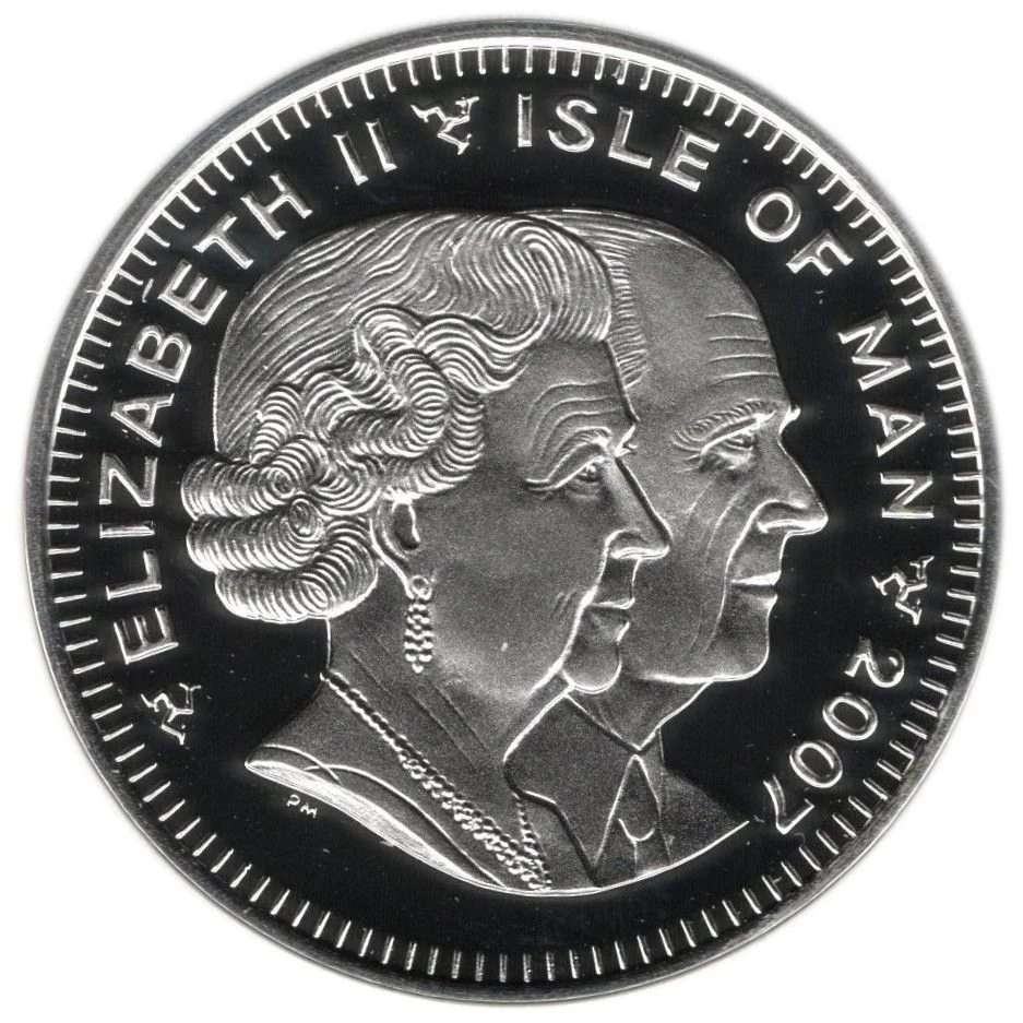 In 2007, the Isle of Man's currency situation was defined by its unique political status as a British Crown Dependency. While not part of the United Kingdom, the Island's long-standing monetary policy was to align its currency with that of its largest trading partner. Consequently, the official currency was the Manx pound, which was issued by the Isle of Man Government and maintained a fixed parity at a 1:1 exchange rate with the pound sterling. Sterling notes and coins also circulated freely and were accepted as legal tender alongside distinct Manx-issued notes and coins, which featured local symbols and imagery.