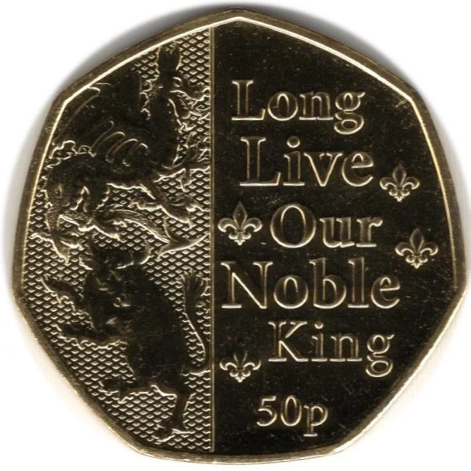 King Charles III left-facing uncrowned head. Legend around, date below.