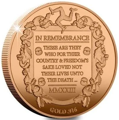 Inscription encircled by a poppy wreath, topped by a triskelion.