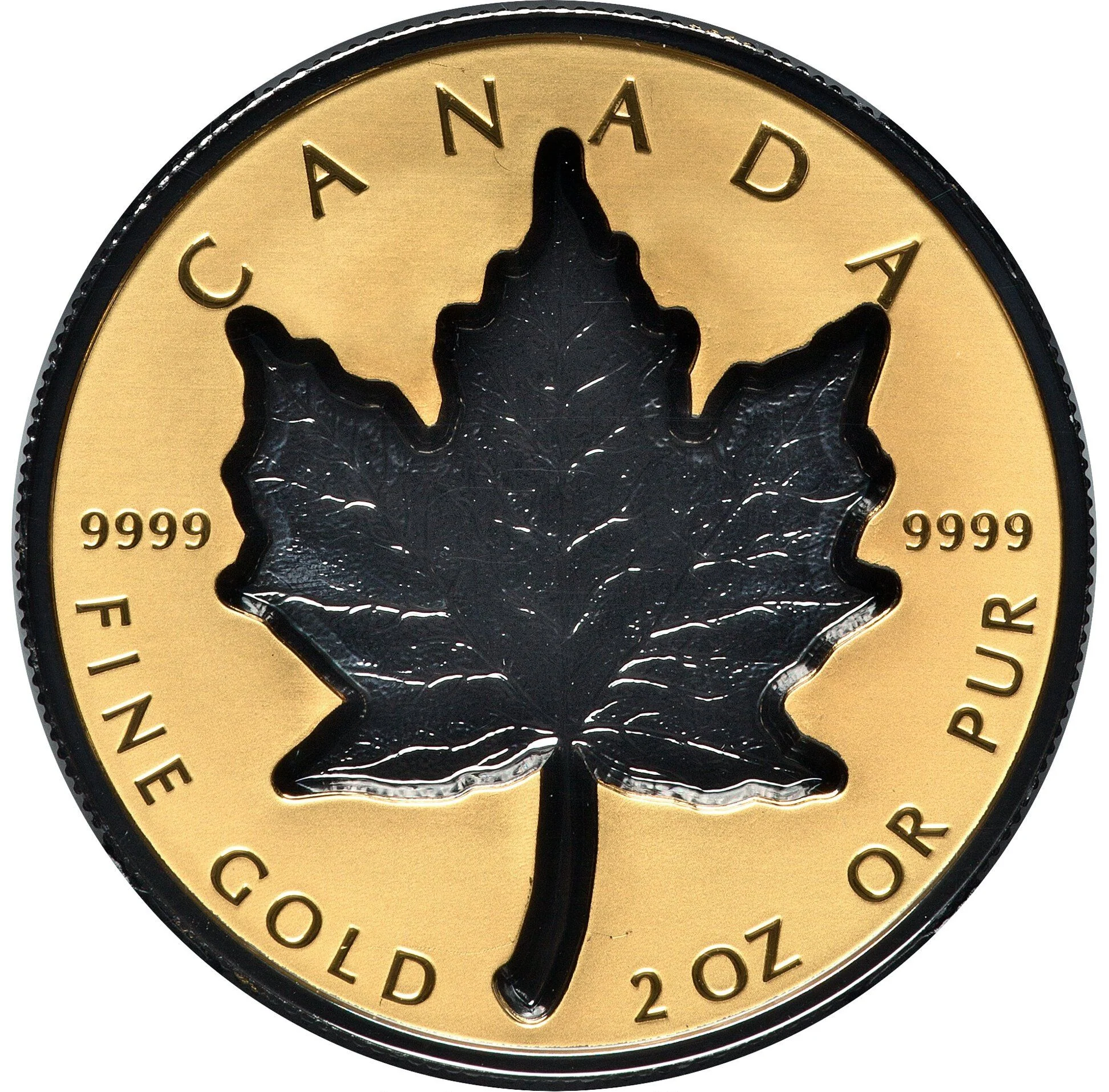 Rhodium-plated maple leaf.