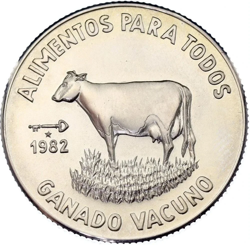 Left: bovine cattle, mintmark, and date. Above: event name in circular legend. Below: resource name.