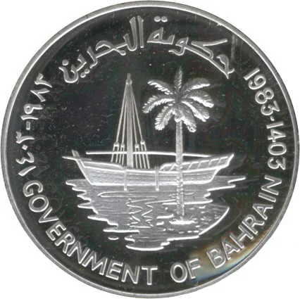 Traditional sailboat behind a palm tree. State name and dates in Arabic and English.