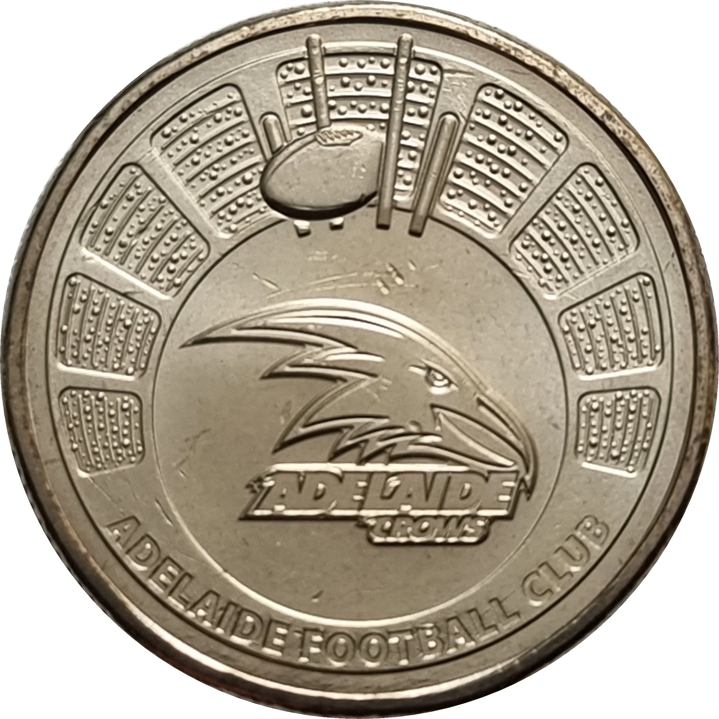 Adelaide Crows logo on a football field with goalposts and a ball.