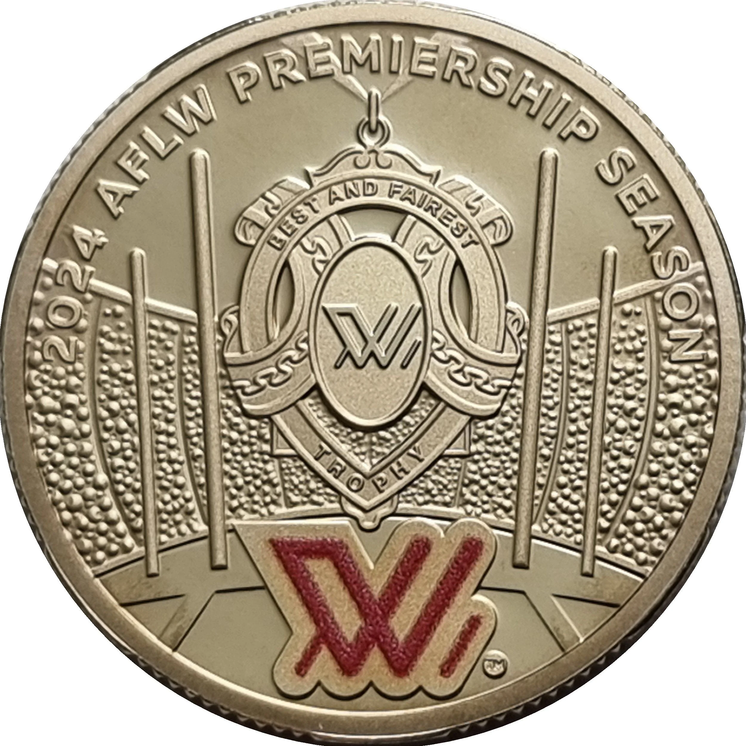 Best and Fairest medal before AFL goalposts. Coloured AFLW logo below.