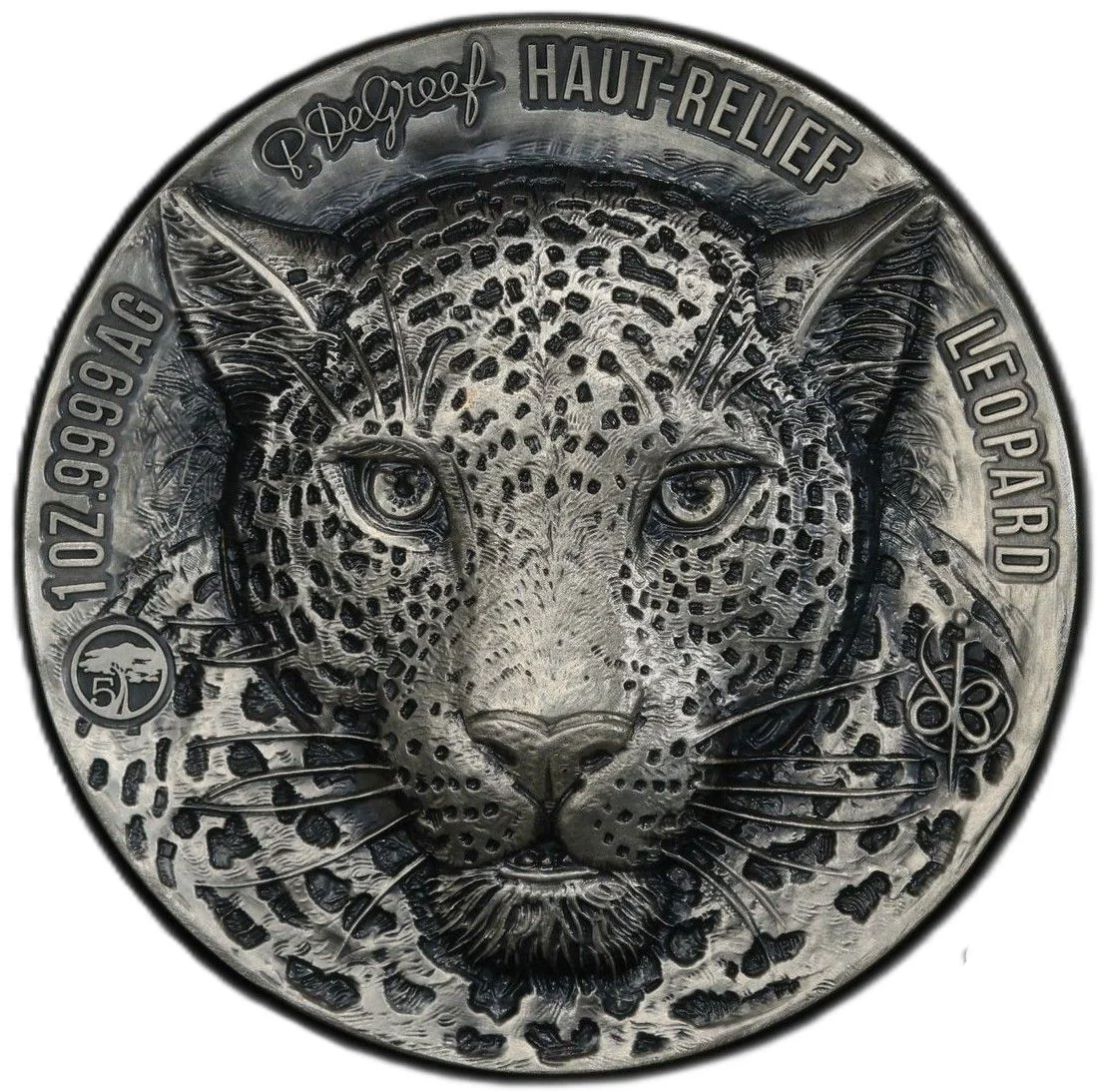 1OZ .9999 AG HAUT RELIEF LEOPARD