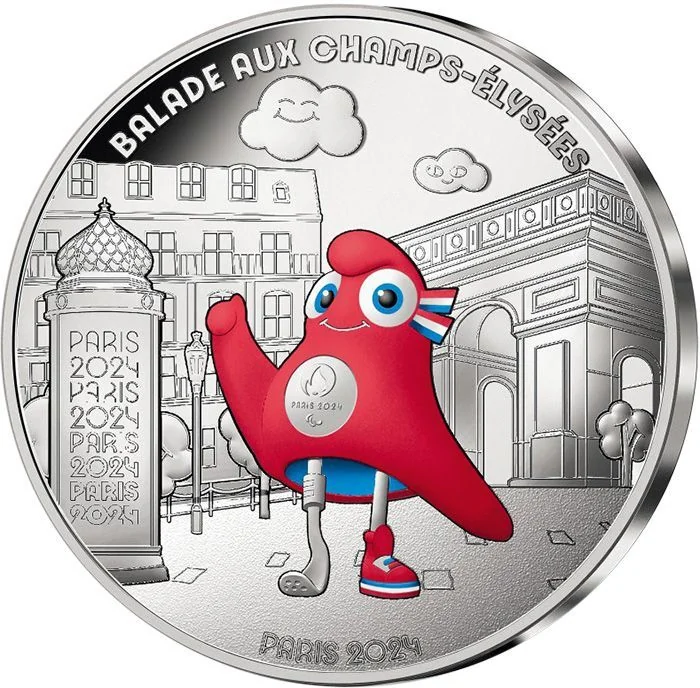 Phryge, the Paris 2024 mascot, on the Champs-Élysées.