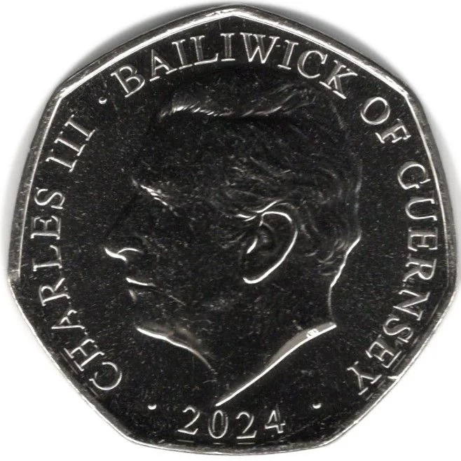 King Charles III left-facing uncrowned head. Legend around, date below.