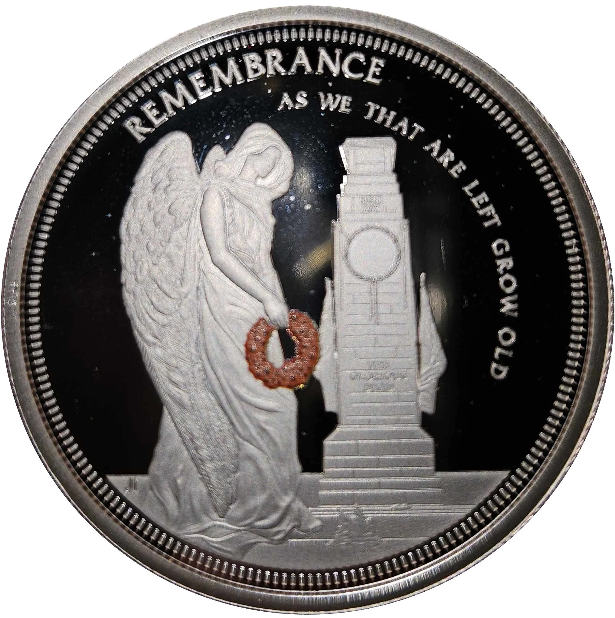 Victory holding a poppy.