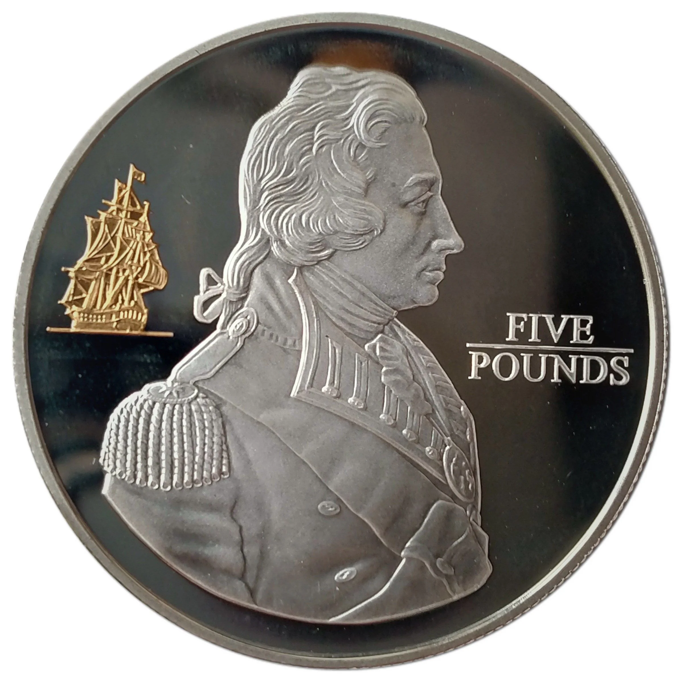 Nelson bust right, gold ship left, value right.