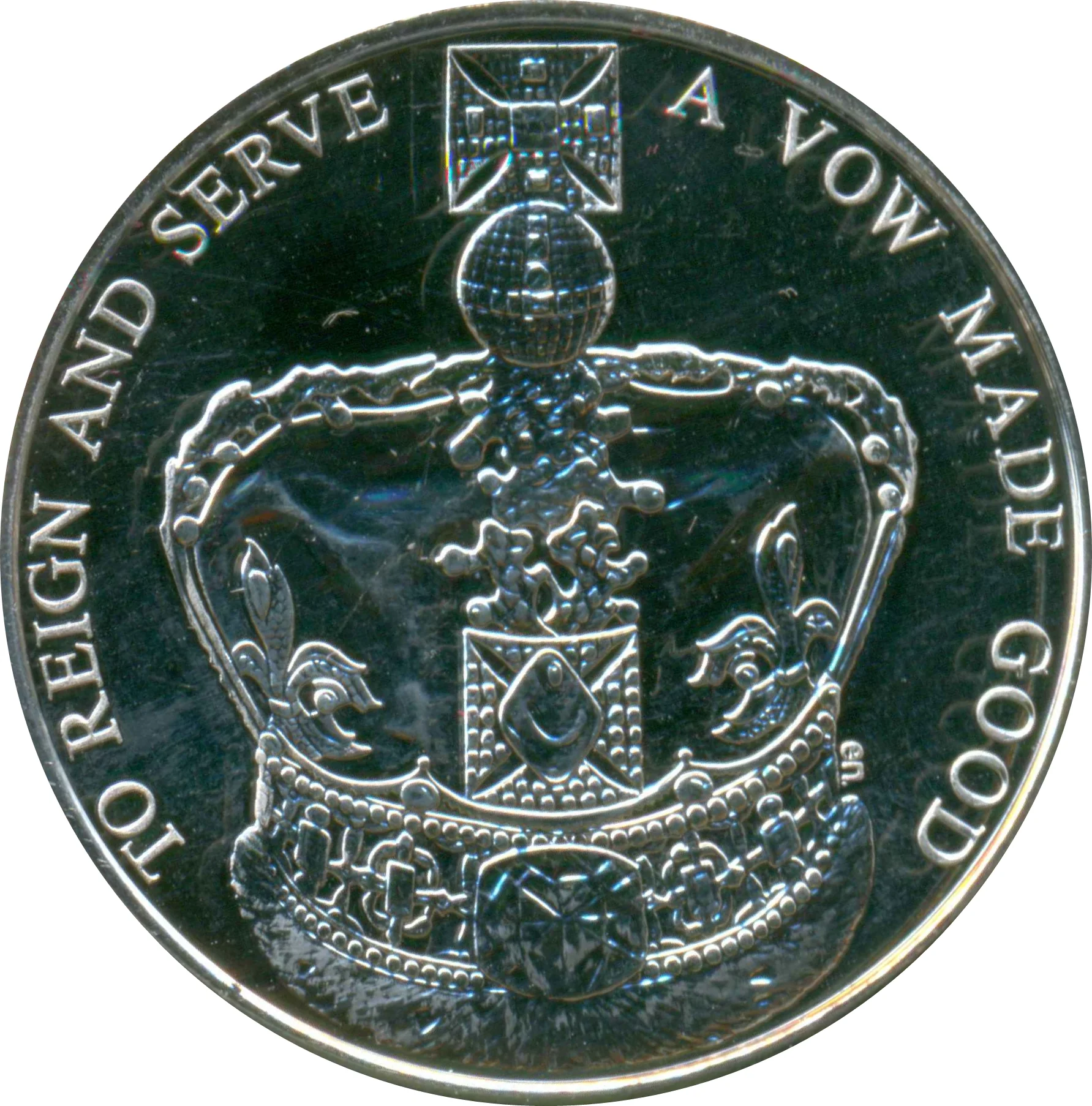 The Imperial State Crown, encircled by legend.