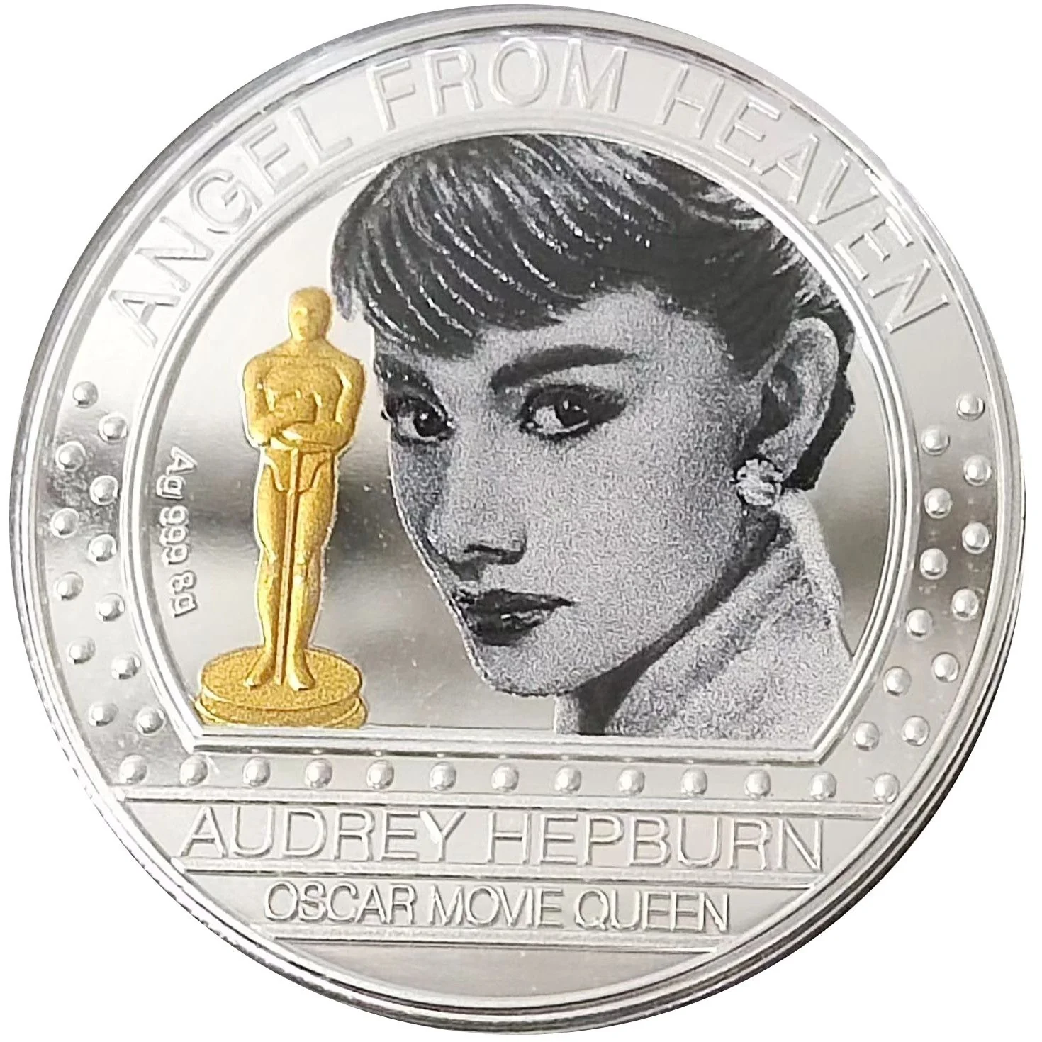 Audrey Hepburn's bust and a golden Oscar, both in color.