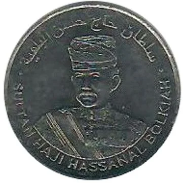 Portrait of Sultan Haji Hassanal Bolkiah with English and Arabic text.