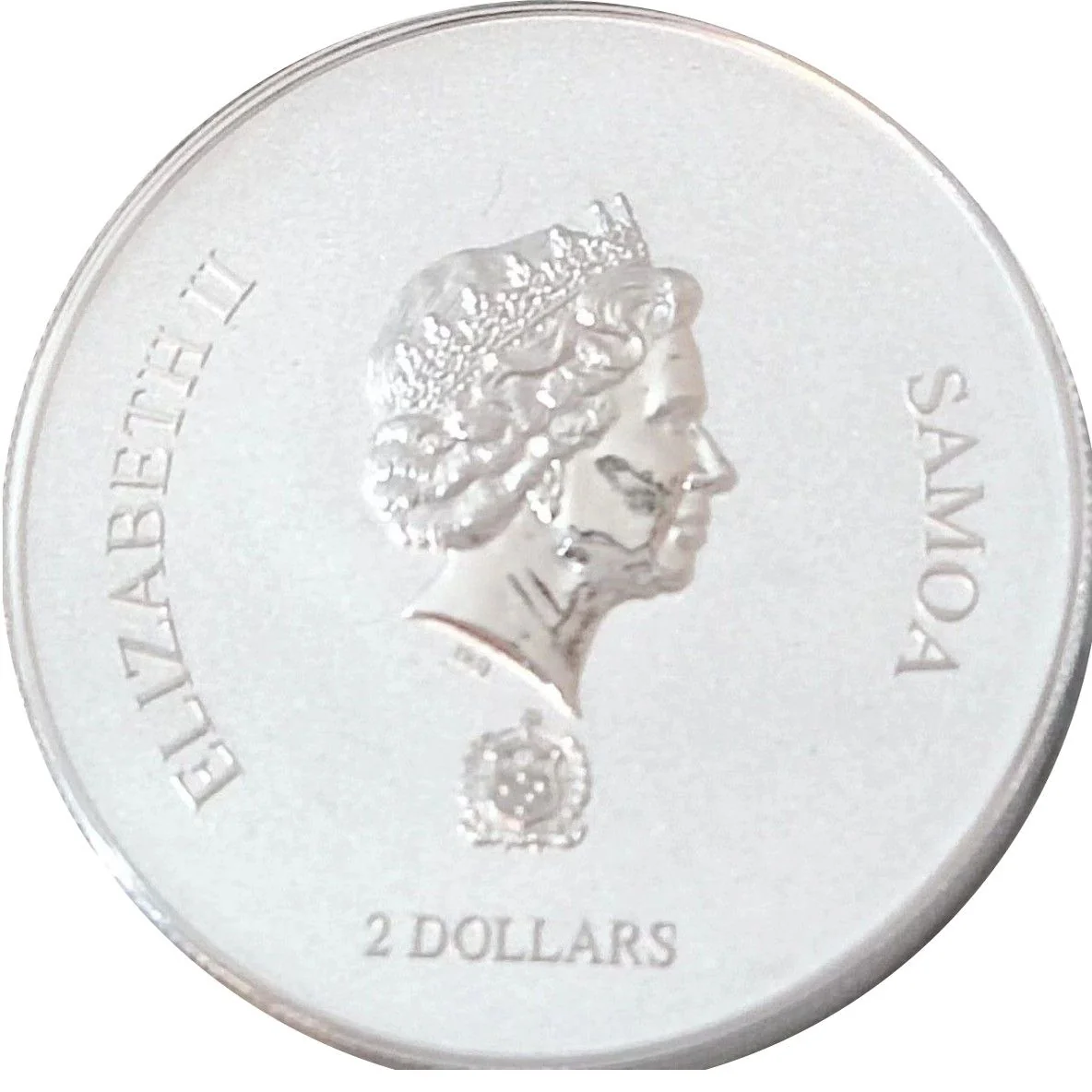 Elizabeth II bust centered, with Samoa's coat of arms and denomination below.