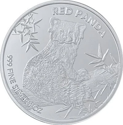 Red panda on a branch, with weight and fineness noted.