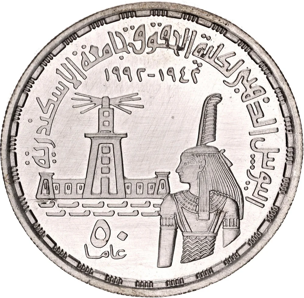 The University of Alexandria emblem features the lighthouse behind a bastion.