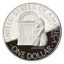 Architect James Hoban before the White House entrance, with title below.