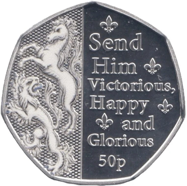 King Charles III left-facing uncrowned head. Legend around, date below.