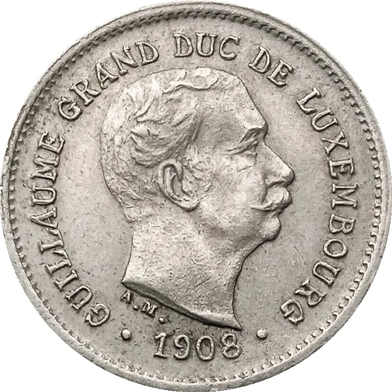 Portrait of Luxembourg's Grand Duke William IV (1852–1912) facing right, with legend, date, and engraver's initials below.