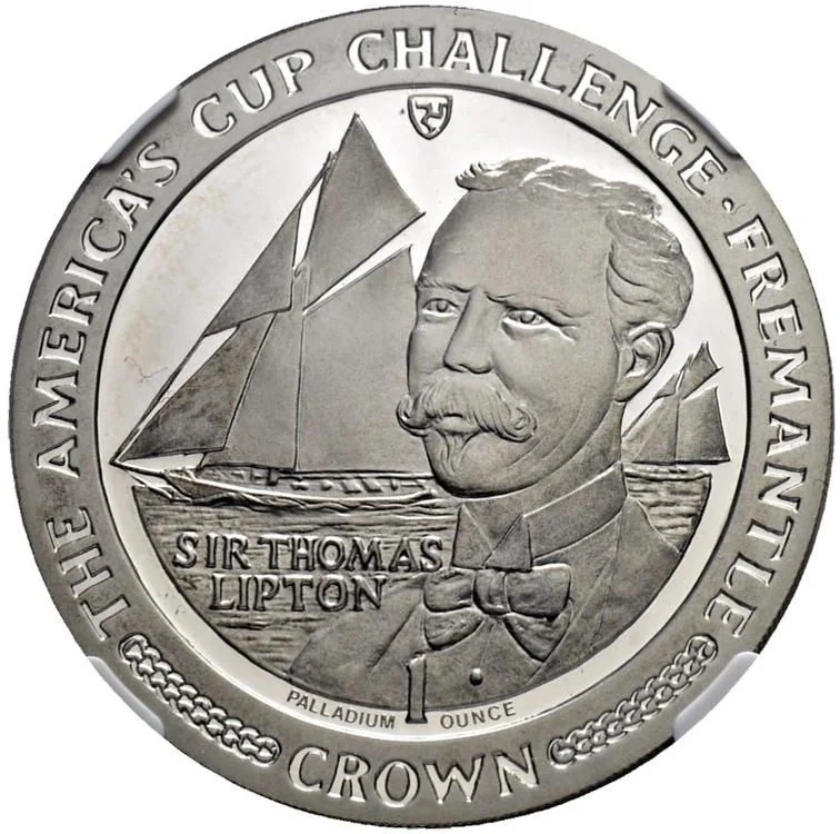 Bust of Sir Thomas Lipton with his America's Cup yacht, "Shamrock."