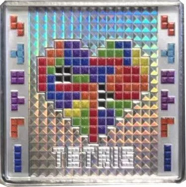 Saint Basil's Cathedral with a heart background, surrounded by Tetris blocks. The Cameroonian coat of arms below.