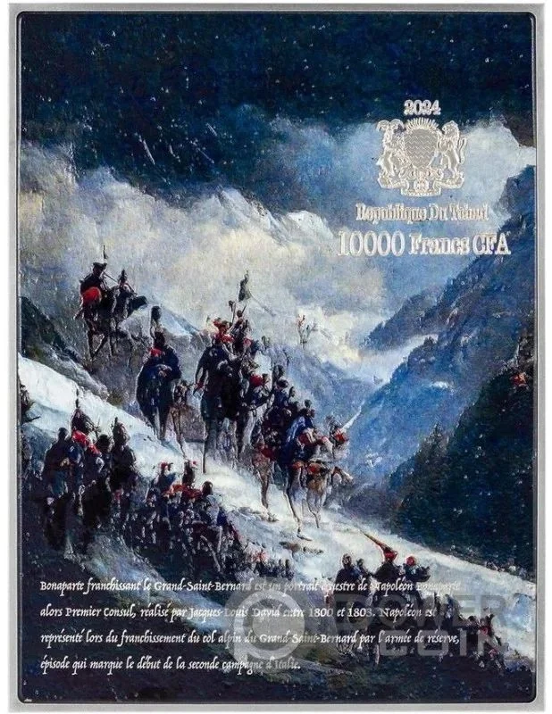 Description: Colored "Napoleon Crossing the Alps" with Chad's coat of arms at top right.