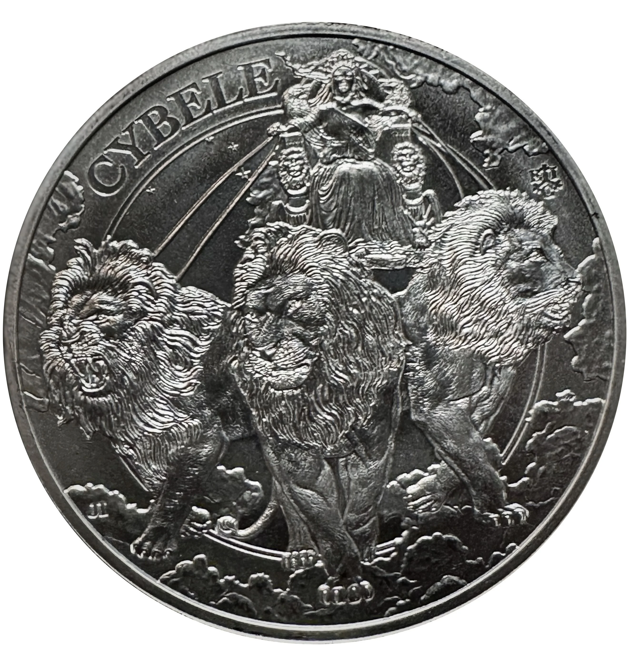 Cybele in her chariot, drawn by adorned lions across the night sky.