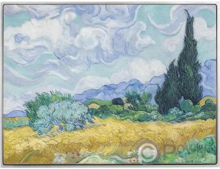 Van Gogh-style wheat field with Chad's coat of arms at lower left.