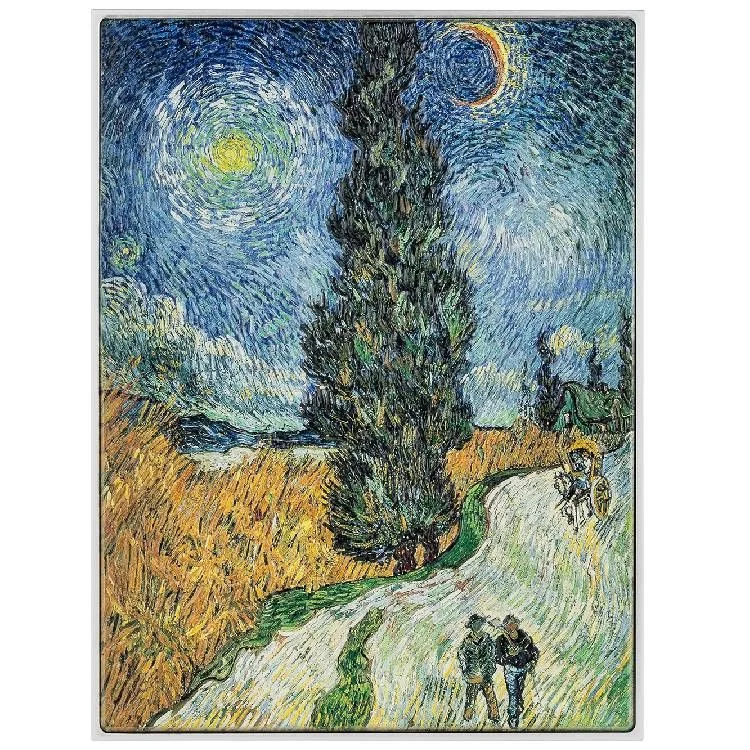 European houses in Van Gogh's style. Chad's coat of arms at lower left.