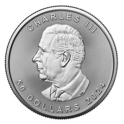 Classic maple leaf design encircled by lettering, featuring a small maple leaf security detail engraved with the last two digits of the year.