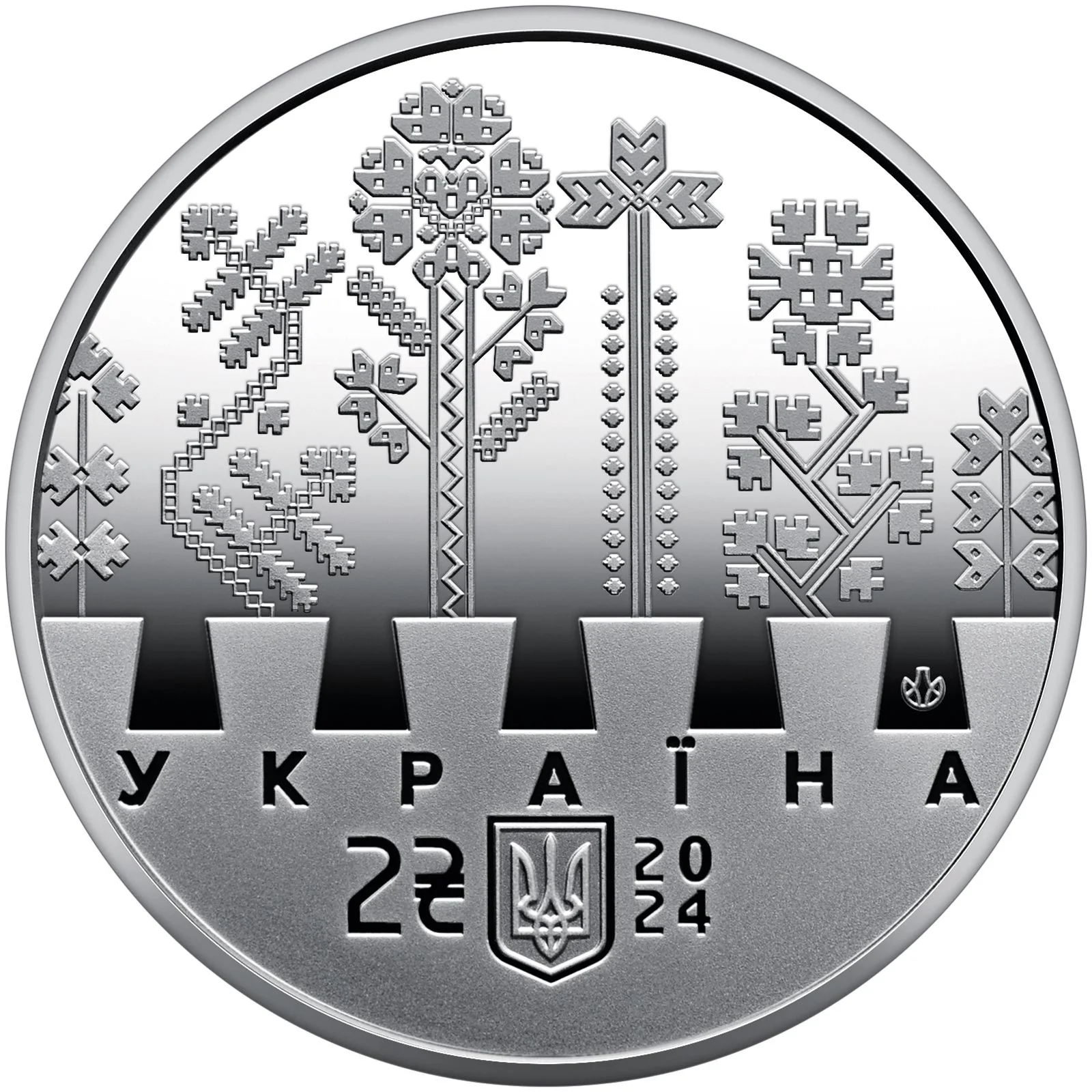 A stylized composition of six flower pots, drawn from the Hadiach ornament, symbolize Pchilka’s six children and their upbringing in Ukrainian tradition. Arranged like a castle battlement, they represent an unshakable fortress of Ukrainian identity.