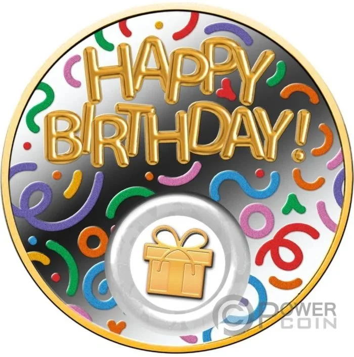 Golden "HAPPY BIRTHDAY!" plating with colored strips.