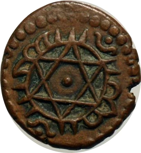 Sudarsana chakra: a six-pointed star encircled by dots.