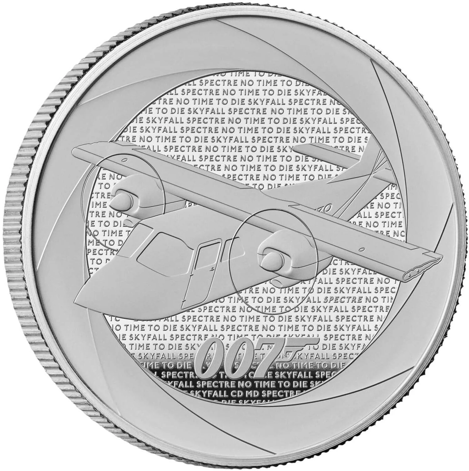 'Spectre' snow plane with 2010s Bond titles and '007' inscription.