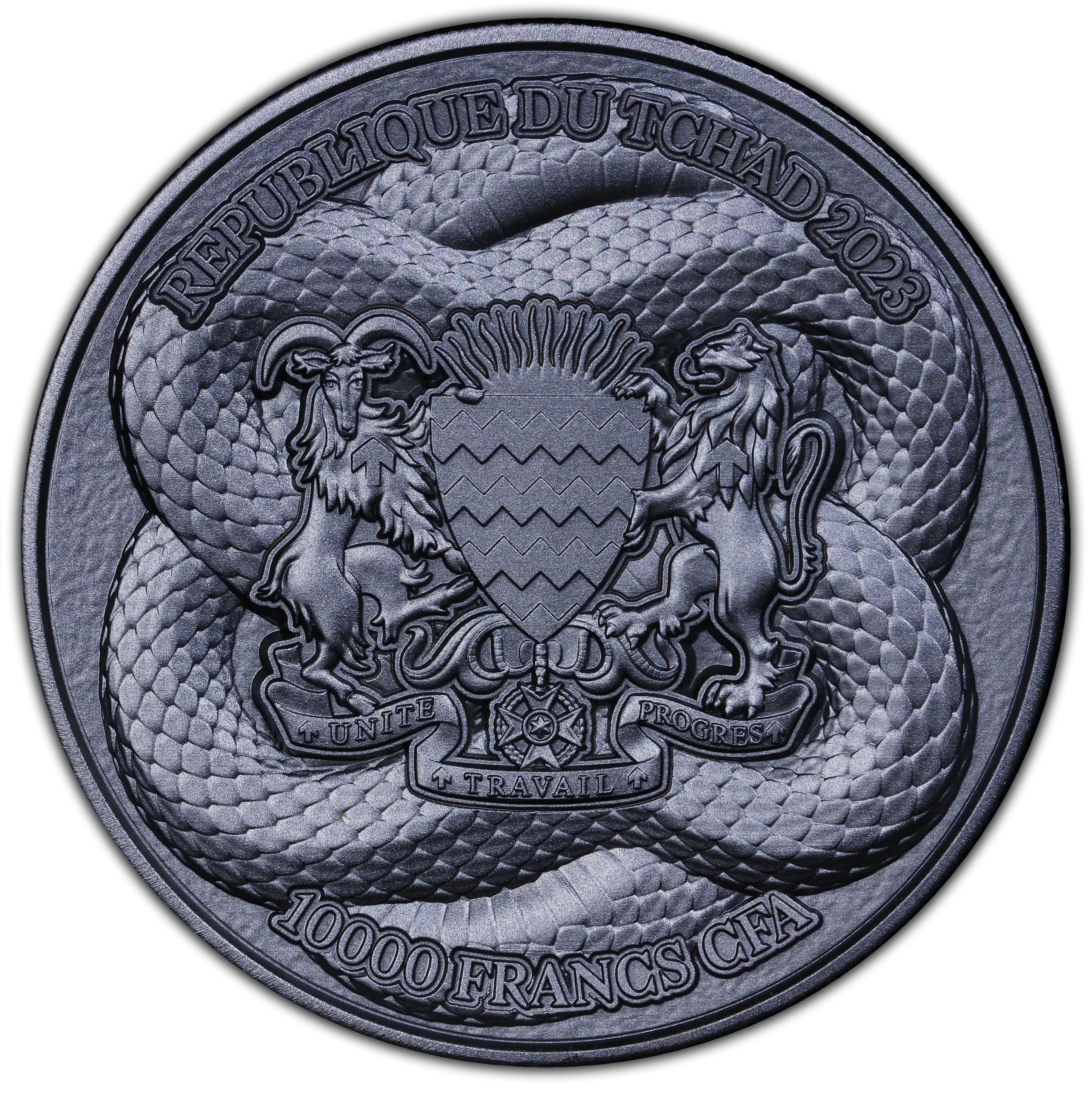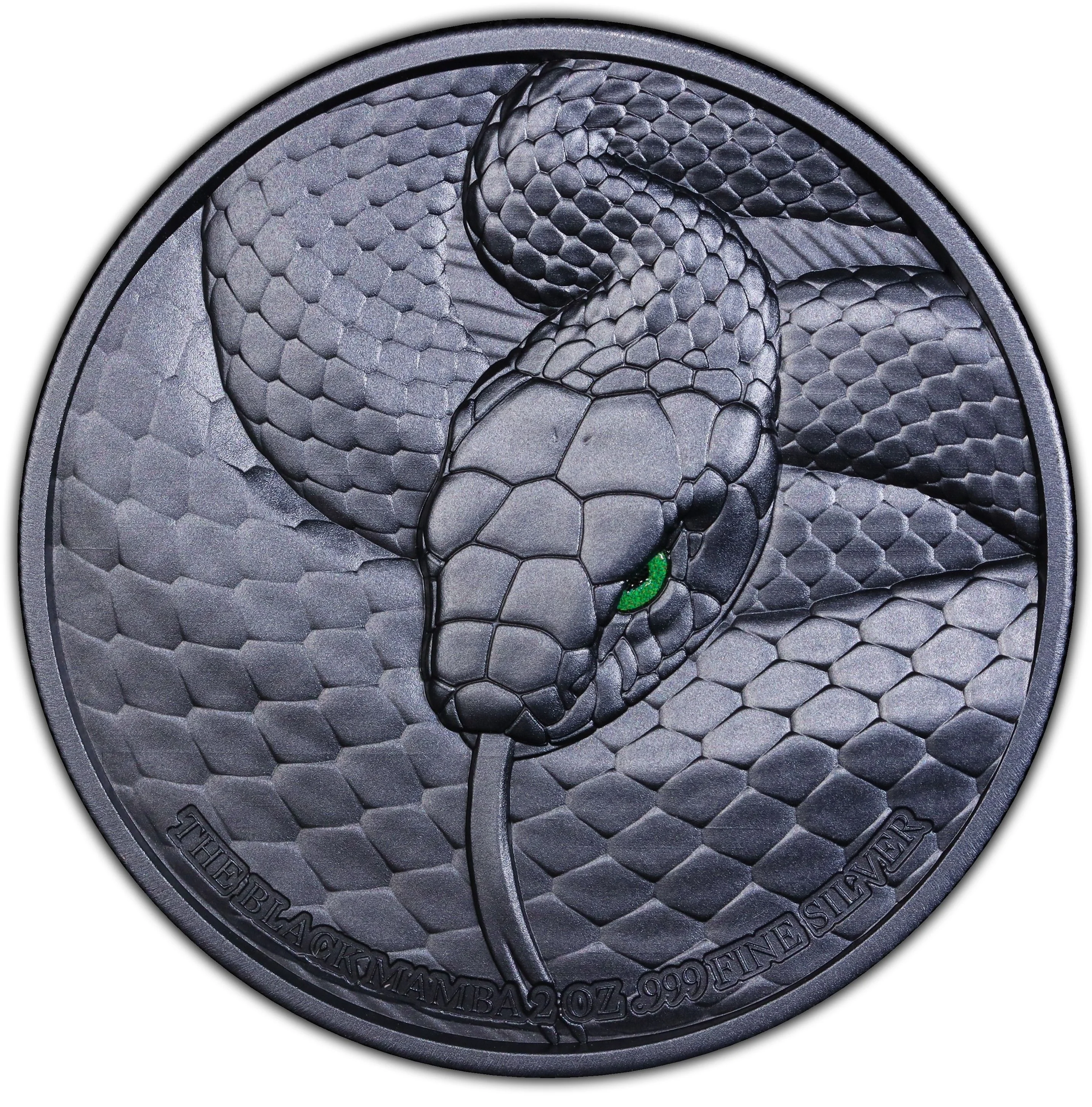 Description: Central coat of arms with a coiled black mamba behind it, country name above, value below.