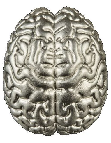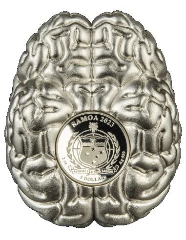 This three-dimensional coin meticulously reproduces the human brain, featuring its iconic structure in fine, precious detail.