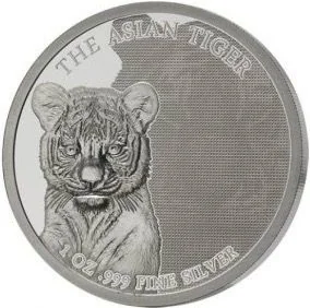 Description: Each coin's reverse features a baby Wildcat, representing the Asian Tiger, European Lion, and African Lion. Using Visual Layer Minting, a geometric texture reveals the image of the corresponding adult feline. Also inscribed are "1 OZ .999 FINE SILVER" and the coin's name.
